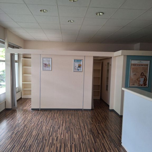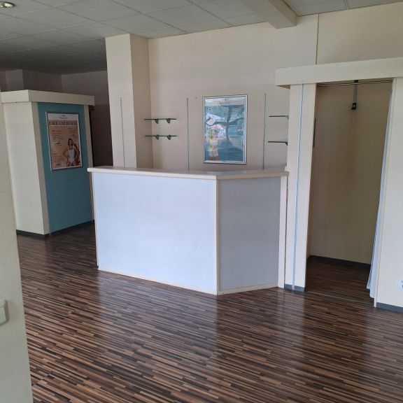 - Empfangsbereich mit Theke und Stellmöglichkeiten für Warte- oder Kundenbereich